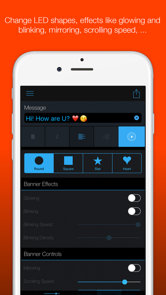 LED Banner Pro: Marquee Maker には iOS 12.1.2 以降が必要です。アプリの現在のバージョンは 2.8 で、ドイツ語、ロシア語、フィンランド語で実行できます。
